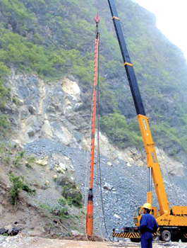 振沖器是振沖法施工中的特制機(jī)具。它產(chǎn)生水平向振動力振擠填料及周圍土體,而達(dá)到提高地基承載能力、減少沉降量、增加地基穩(wěn)定性、提高抗地震液化能力。 振沖法施工時(shí)除原地沖器外,尚需行走式起吊裝置,泵送輸水系統(tǒng),控制操作臺等。如工程單位缺乏起重機(jī),本廠還供應(yīng)振沖器施工樁架,樁架有單邊滾管立柱式、液壓步履式、簡易履帶式等。